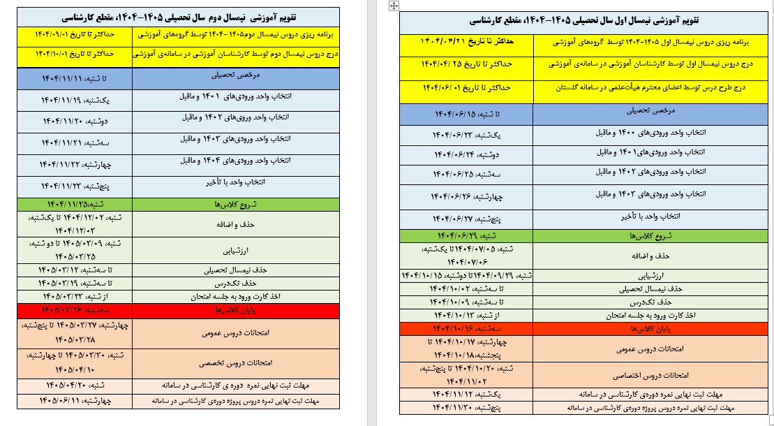 تقویم آموزشی کارشناسی ارشد و دکتری (1405-1404)