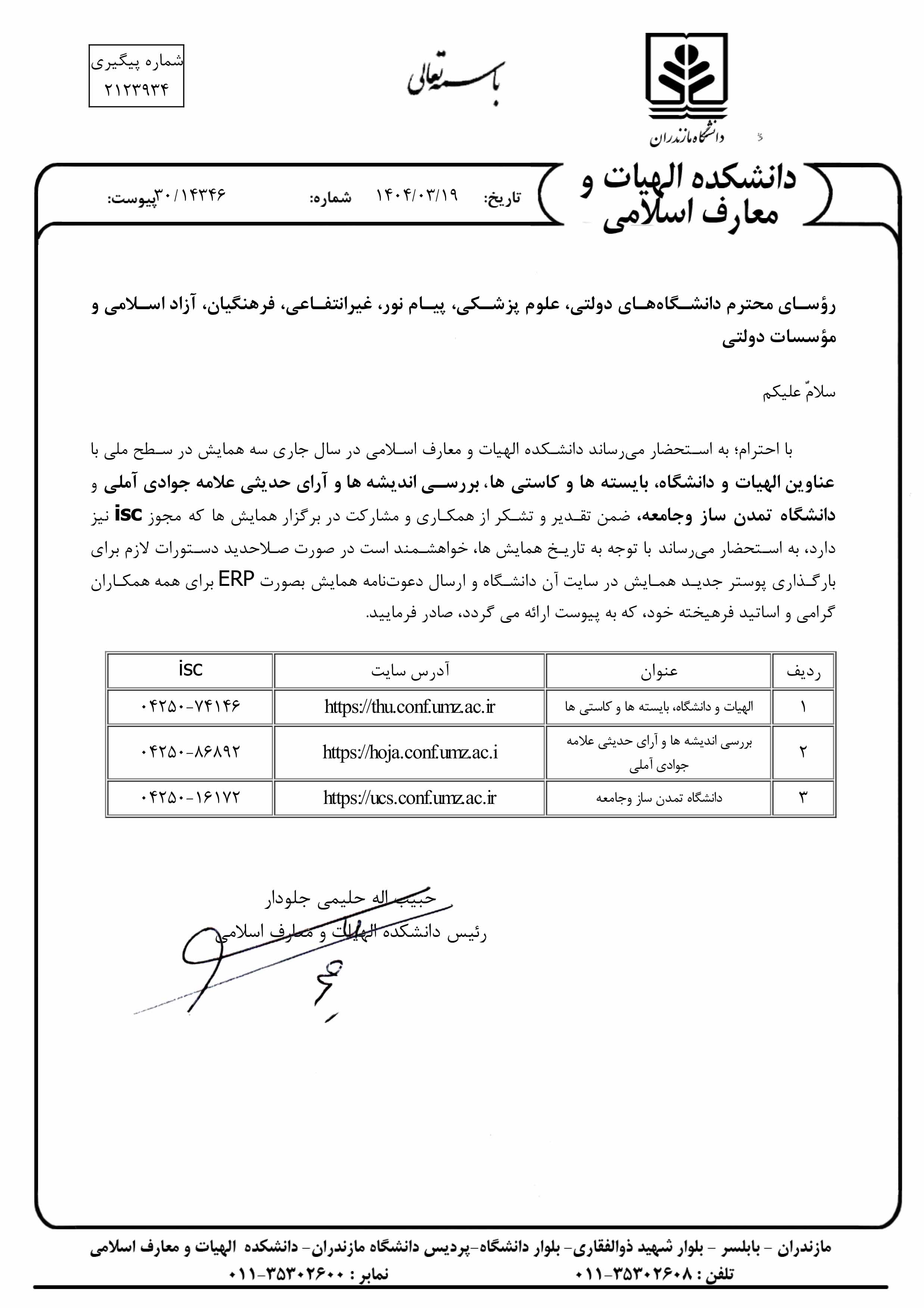 سه همایش دانشکده الهیات و معارف اسلامی دانشگاه مازندران در سطح ملی برگزار میشود