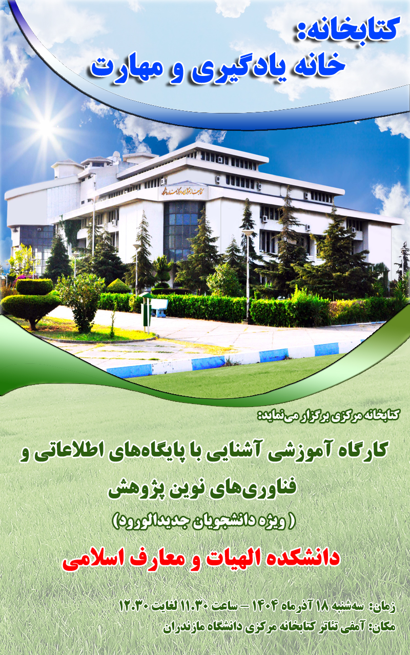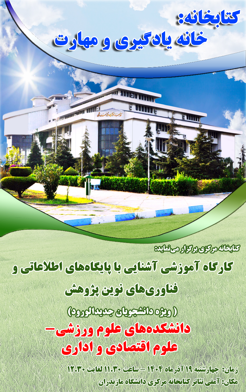 کارگاه آموزشی آشنایی با پایگاههای اطلاعاتی و فناوریهای نوین پژوهش(ویژه دانشجویان جدیدالورود) - دانشگاه مازندران
