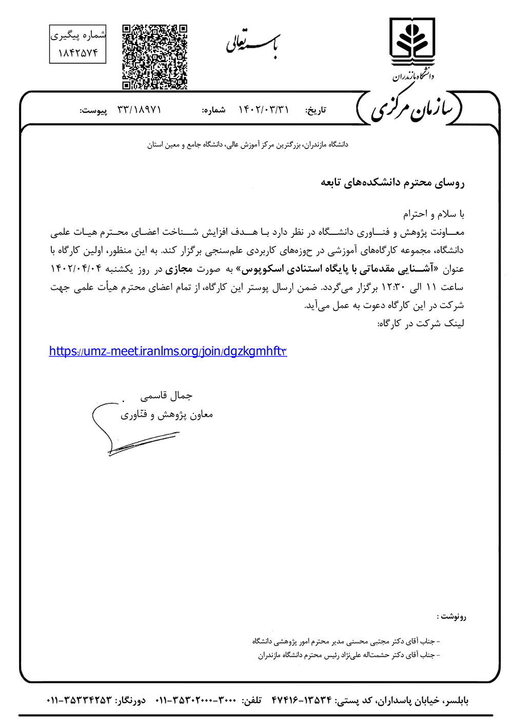 کارگاه مجازی علم سنجی «آشنایی مقدماتی با پایگاه استنادی اسکوپوس» - دانشگاه مازندران